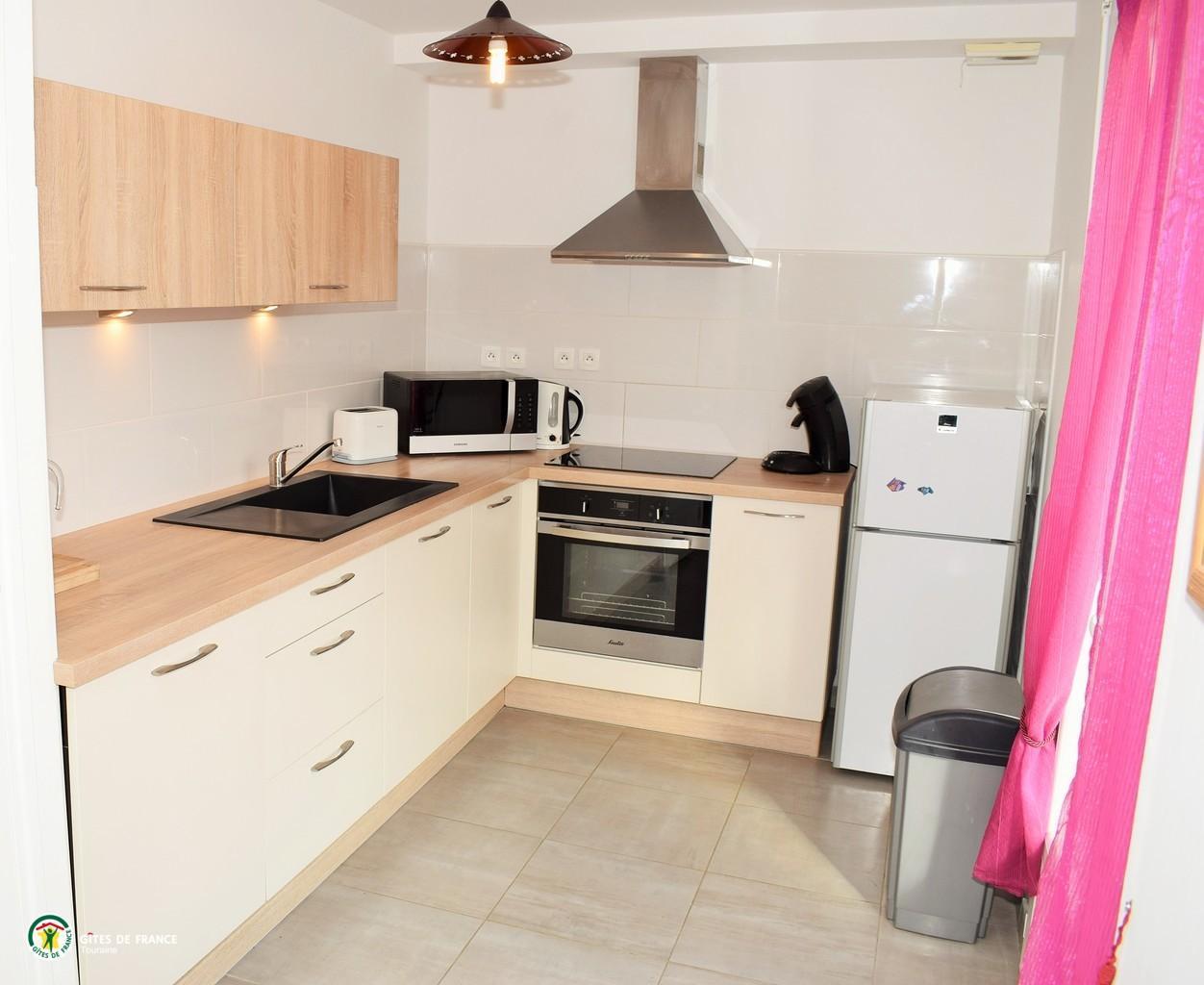 • Cuisine équipée: Table à manger, Plaque de cuisson, Four, Ustensiles de cuisine, Cafetière Senséo, Lave-vaisselle, Micro-ondes, Réfrigérateur, Bouilloire, Grille-pain…