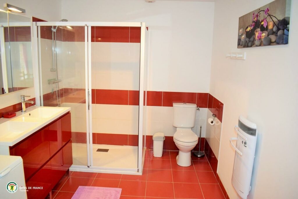 • Salle de bain privative avec douche, sèche serviette